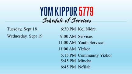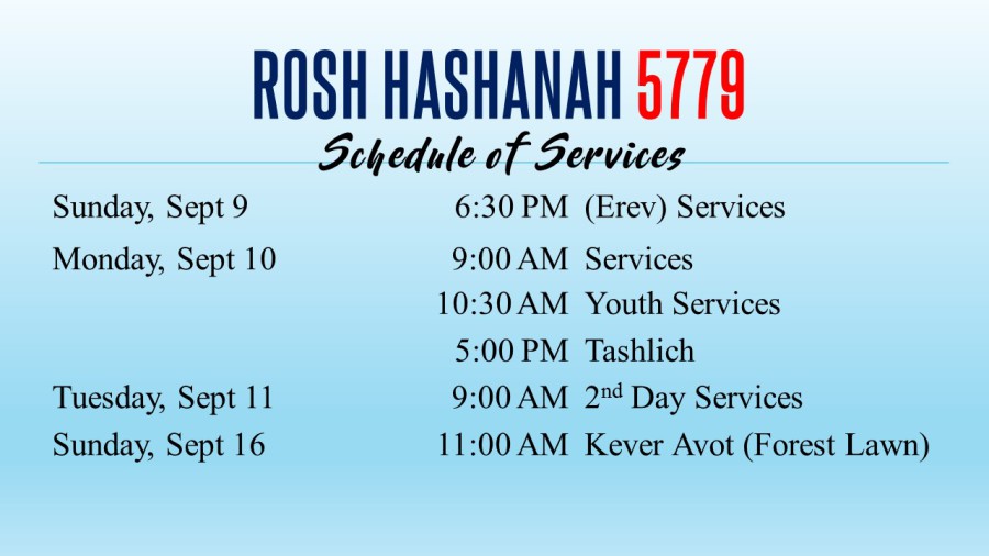 Please join us for the High Holy Days as we celebrate the New Year and think about the past year and how we have lived it. Hear the Shofar, reconnect with the Jewish community and find everyday holinesswith our Temple family.
